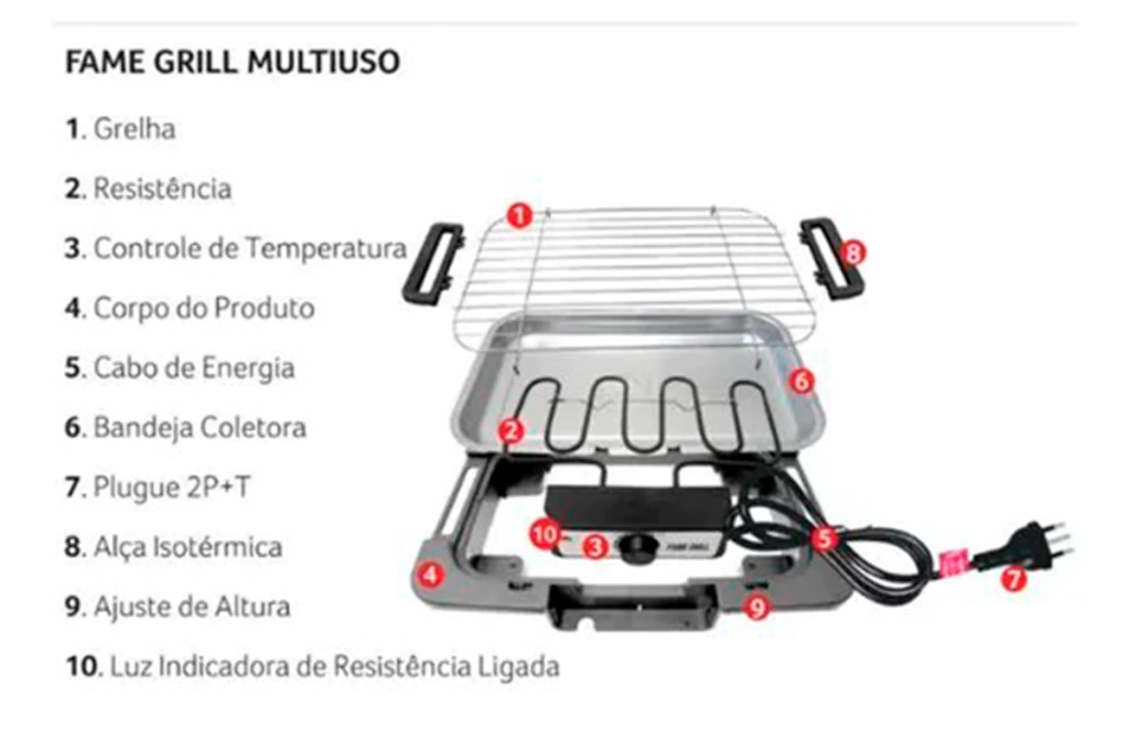 Leve para sua casa a praticidade da Churrasqueira Elétrica Fame Grill! Ideal para quem busca uma opção rápida, segura e sem fumaça para preparar carnes, legumes, hambúrgueres e muito mais. Com design moderno e funcional, ela é perfeita para apartamentos, varandas, áreas gourmet ou até para levar em viagens.