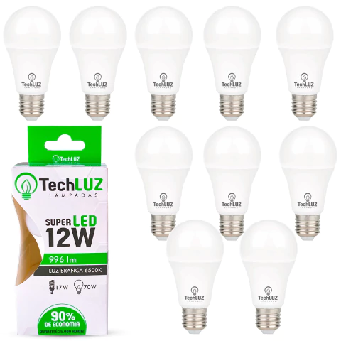 KIT COM 10 LÂMPADAS LED PERA 12W 6500K E27 TECLUZ