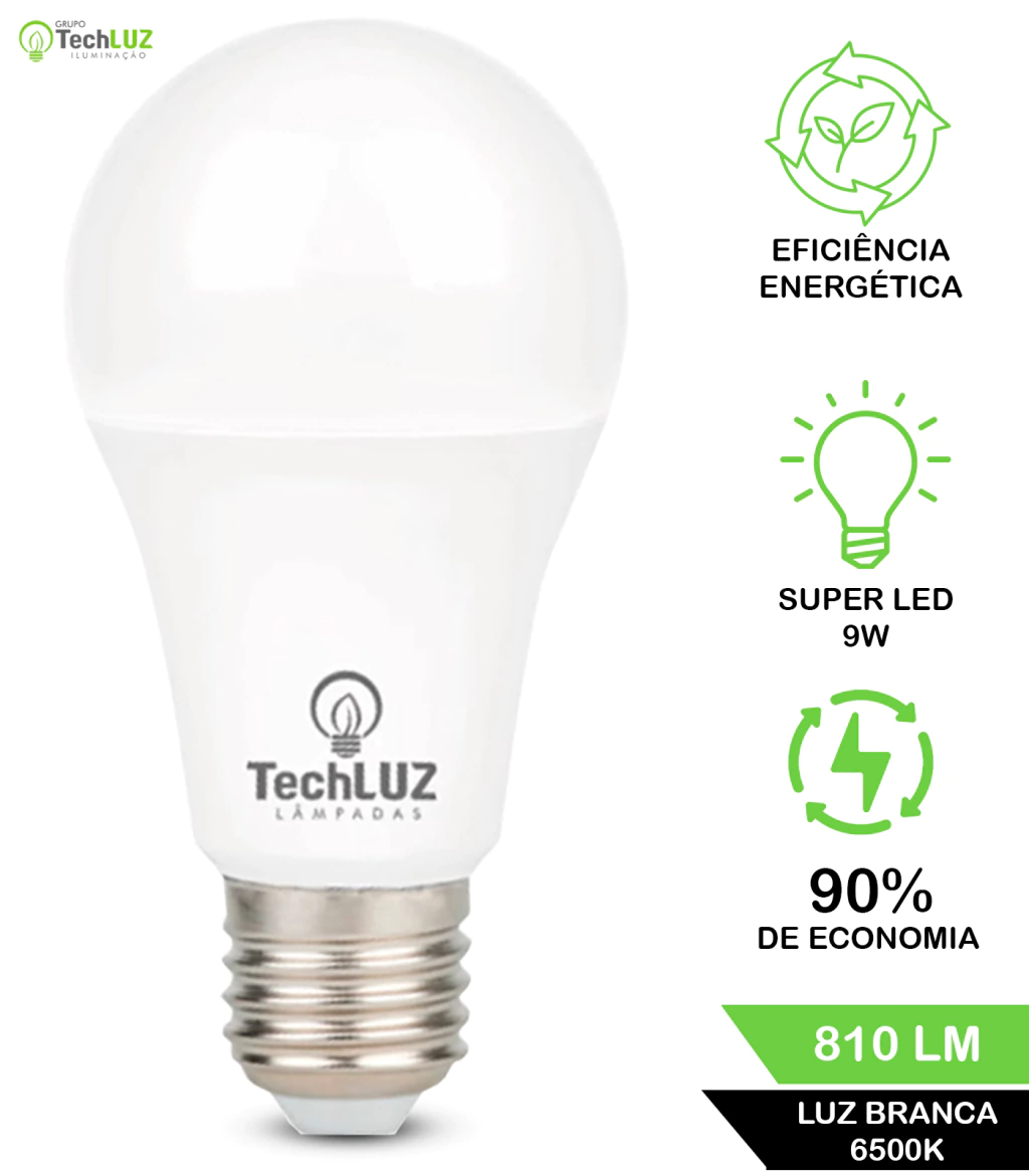 KIT COM 10 LÂMPADAS LED PERA 9W 6500K E27 TECLUZ