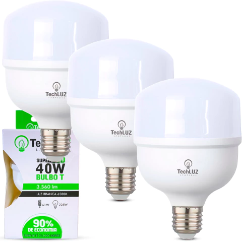 KIT COM 3 LÂMPADAS LED BULBO 40W 6500K LUZ BRANCA TECHLUZ