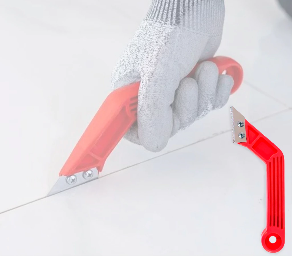 ESTA FERRAMENTA É UTILIZADA NA REMOÇÃO DE REJUNTE E ABERTURA DE SULCOS SOBRE TRINCAS EM PAREDES PARA POSTERIOR RECOBRIMENTO. CONFORME A LARGURA DO REJUNTE, PODE-SE REMOVER UMA DAS LÂMINAS PARA FACILITAR O TRABALHO.